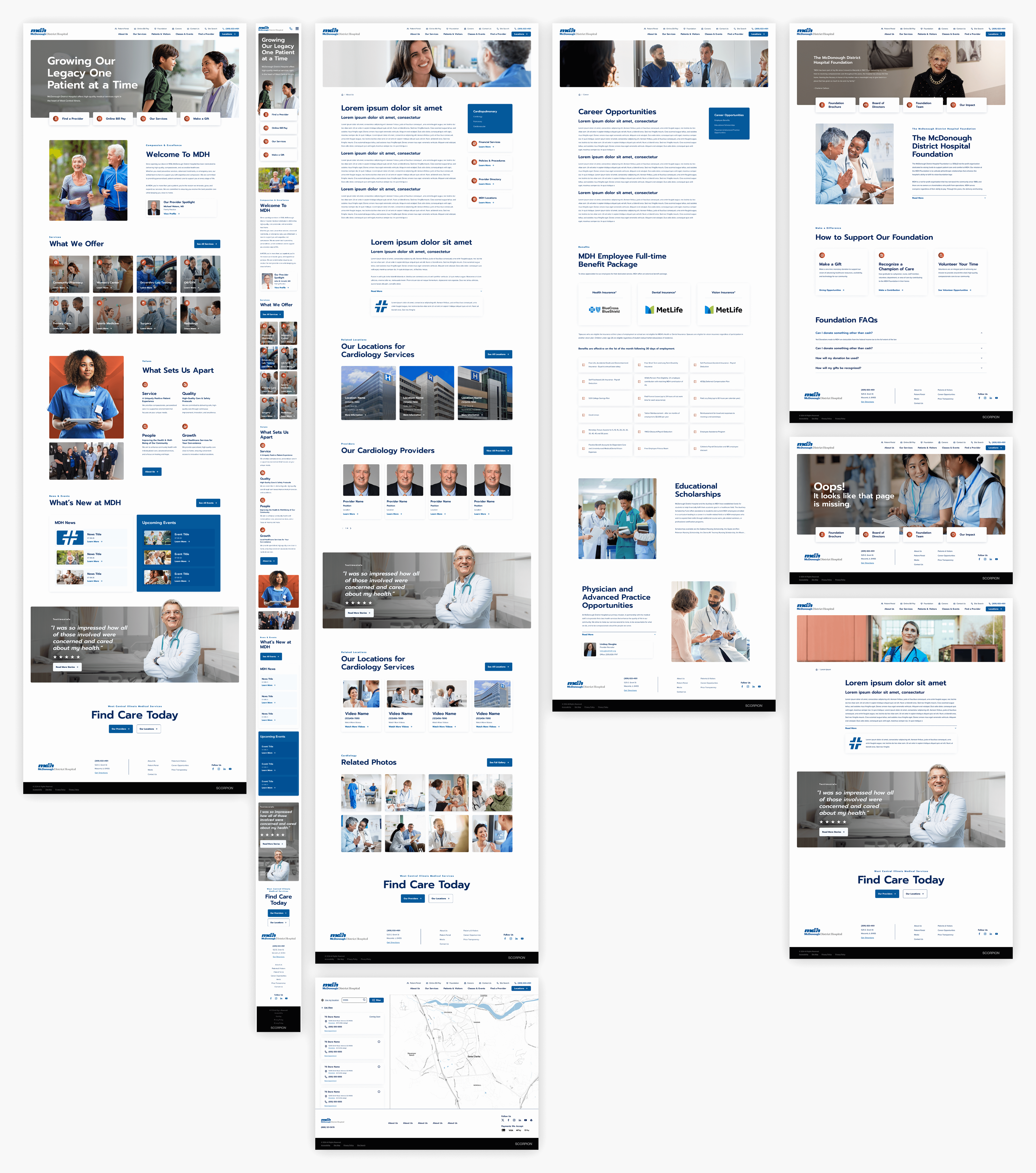 At Scorpion, I was the lead designer McDonough District Hospital’s refreshed website. To support McDonough District Hospital’s mission of delivering high-quality care close to home, this project focused on elevating their online presence with a fresh, modern design that still honored their longstanding community legacy. The goal was to reflect the hospital’s investment in updated facilities and to present a caring, professional, and trustworthy image—one that resonates with their audience and encourages growth in privately insured patients.
